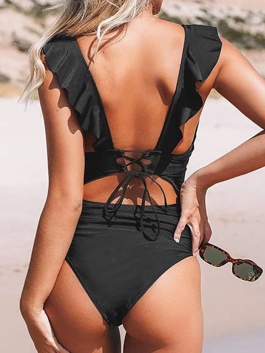 Women’s V-Neck Ruffle One-Piece Swimsuit